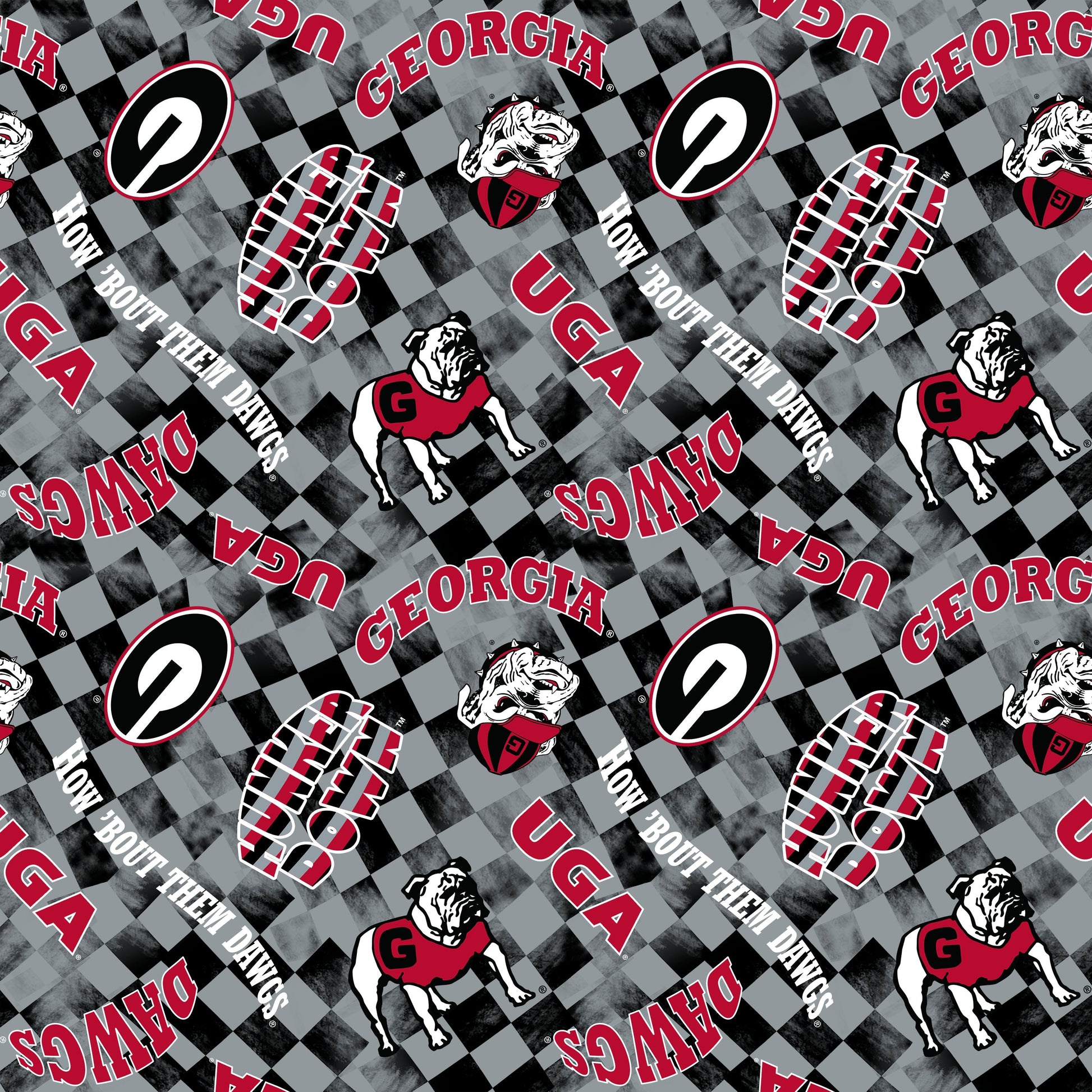 Georgia Bulldogs NCAA College Checks Gray designed by Sykel Enterprises 43 inches wide 100% Canvas Duck Cloth Cotton Fabric GA-1380-GRAY